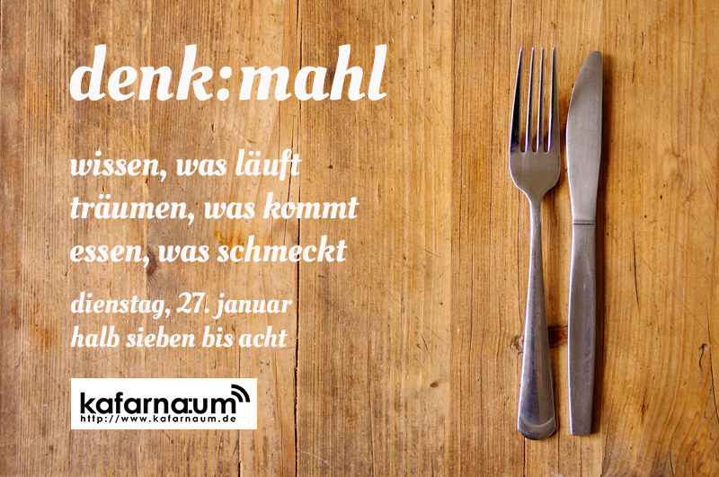 denk:mahl. Dienstag, 27. Januar. 18:30 Uhr in der Küche. Bis dann!