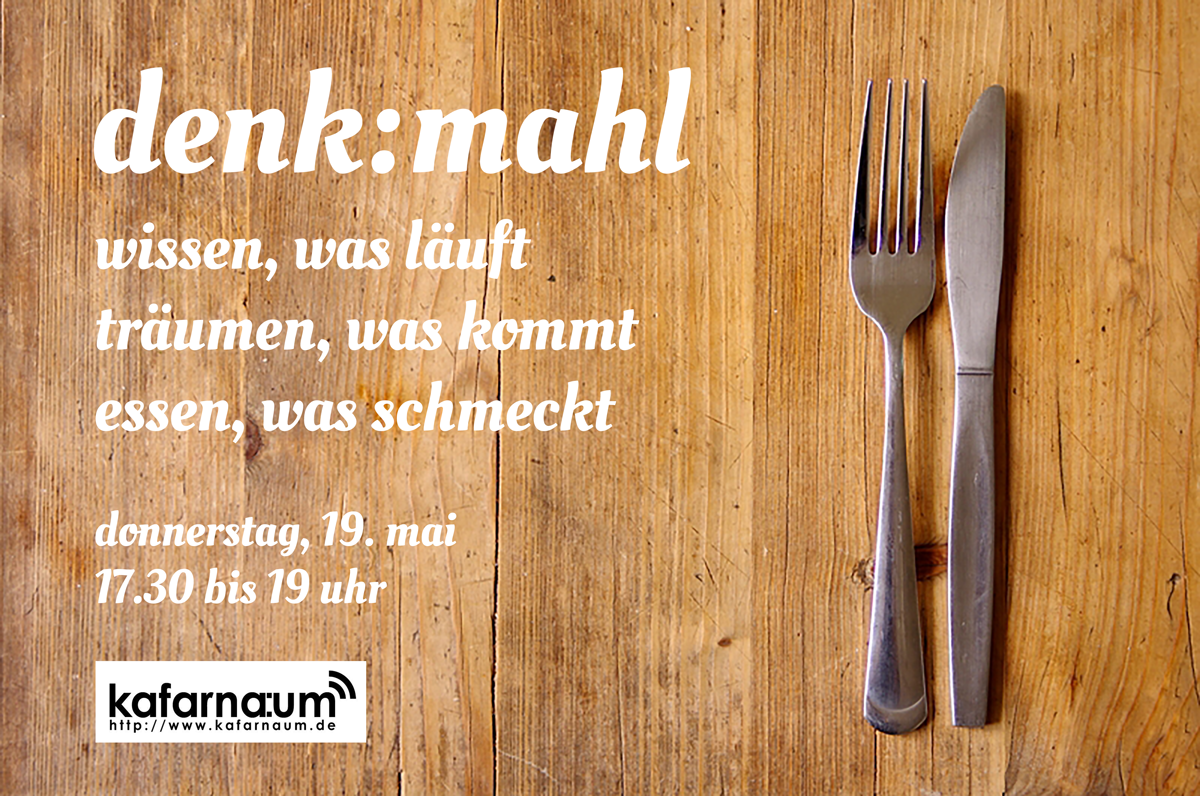 Der Sommer ist da! Auch wenn es in den nächsten Tagen nochmal wirklich frisch wird sind wärmere Temperaturen in den nächsten Wochen auf dem Vormarsch. Der richtige Zeitpunkt, um die Köpfe zusammenzustecken und Pläne zu schmieden, was diesen Sommer in kafarna:um los sein wird. Zum denk:mahl kannst du deine Ideen mitbringen oder einfach nur kommen und dir anhören, was andere gerade so planen und vorhaben. Dazu gibt’s wie immer was Leckeres zu essen. Wann? Donnerstag, 19.5. von 17.30 bis 19 Uhr. Mit dir?