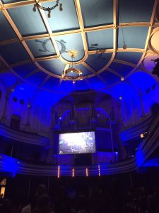 Auch am Donnerstag sind wir auf die Suche nach frischen Ideen gegangen. Der Tag begann sehr früh, weil wir uns zum Morgengebet der Kirchenbewegung „Hillsong“ in das Bankenviertel Canary Whorf aufgemacht haben. Um halb acht versammelten sich in einem Kinosaal viele Menschen mit Aktenkoffern und in Anzügen, die anschließend ihren Weg zur Arbeit einschlugen. Das junge Team der sogenannten „Megachurch“ hat das Gebet mit Musik von einer Band eingeleitet. Die Atmosphäre war erstaunlich locker und mitreißend.