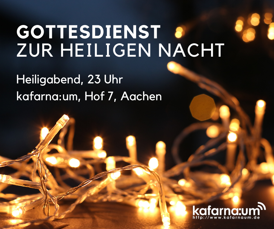 An Heiligabend, wenn Zuhause das Essen verputzt ist und die Geschenke ausgepackt sind, feiern wir in kafarna:um nochmal zusammen. In den vergangenen Jahren hat Weihbischof Bündgens immer die Christmette mit uns gefeiert. Dieses Jahr musste er uns leider kurzfristig absagen. Wir feiern natürlich trotzdem. Allerdings keine Messe. Aber einen Gottesdienst ohne Weihnachtskitsch und Krippenspiel. Obwohl die Krippe nicht ganz unwichtig sein wird. Mit normaler Sprache und der richtigen Mischung aus Glanz und Gegenwart.