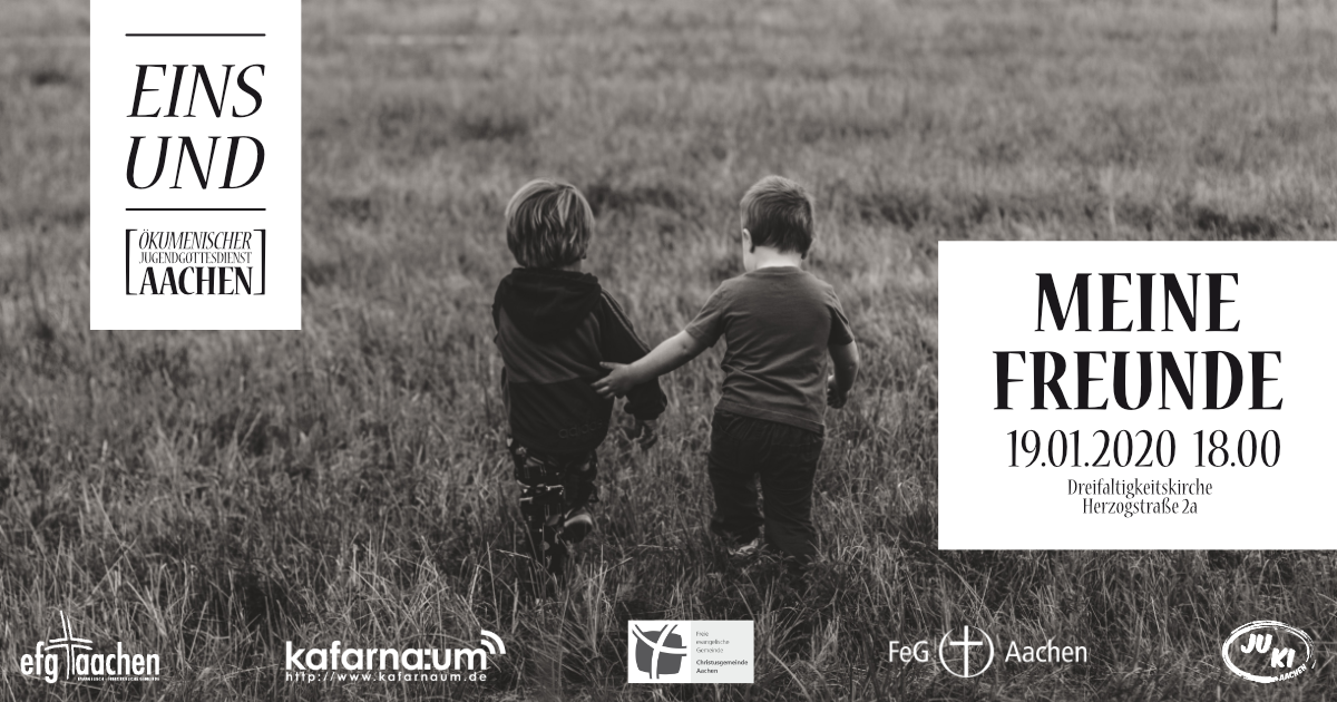Einmal im Jahr tun sich verschiedene Jugendkirchen und -gemeinden aus Aachen zusammen und feiern gemeinsam Gottesdienst: den EinsUnd. Am Sonntag, 19. Januar ist es wieder soweit. Um 18 Uhr geht es los in der Juki (Dreifaltigkeitskirche) an der Normaluhr. Es gibt gute Musik, eine Predigt von Judith, freie Zeit für den Austausch und anschließend get-together. Komm vorbei und feier mit uns…:-)