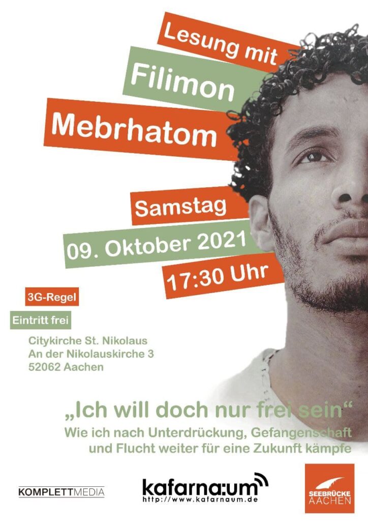 Die Lesung wird gemeinsam mit Filimon Mebrhatom, Komplett-Media, kafarna:um und der Seebrücke Aachen organisiert.