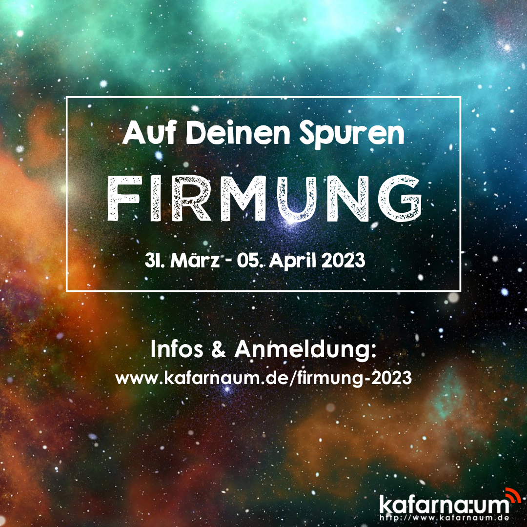 Auch 2023 kannst Du Dich in kafarna:um firmen lassen. Für die Vorbereitung auf die Firmung wird es in der ersten Osterferienwoche (Freitag, der 31.03. bis Mittwoch, der 05.04.) wieder eine Fahrt geben. Die Firmung selbst findet dann am Sonntag, den 07. Mai statt.