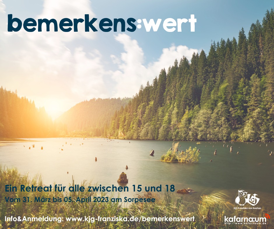 In den Osterferien 2023 kannst du dir Zeit und Raum für dich selbst, für die großen Fragen des Lebens und auch für den Austausch mit anderen in deinem Alter nehmen. Wir werden 6 Tage lang eine großartige Zeit in der Natur, direkt am Ufer des Sorpesees verbringen. Deine Chance, dir selbst eine Auszeit vom Alltag zu gönnen! Wir bereiten für dich eine gute Mischung aus Inputs, Spaß und Kreativem vor, spannende Aktionen und eine wunderbare Gemeinschaft kommen also sicher auch nicht zu kurz.