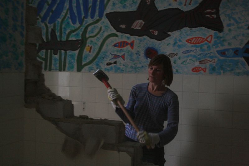 Wenn aus Kinder-WCs ein Büro wird, müssen Zwischenwände dran glauben. Am Wochenende haben wir ca 2 Kubikmeter Steine und Schutt niedergerissen und abtransportiert – der Muskelkater besteht fort. Wir machen riesige Fortschritte, aber es wird Zeit, dass von den vielen Bewerbern nun auch mal ein paar andere mithelfen, bevor uns die Kräfte ausgehen.