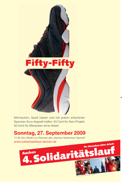 wir brauchen auch deine unterstützung – entweder als läufer oder sponosor! 50% der spenden gehen an arbeitslosenprojekte in aachen, 25% an ein projekt in burkina faso (afrika) und 25% an das taize-wochenende in kafarna:um.