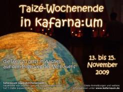 kafarna:um wird freitag abend einige gäste empfangen, samstag gemeinsam mit ihnen und noch mehr gästen einen „tag wie in taize“ erleben, ihnen aachen zeigen, zusammen die „nacht der lichter“ im dom besuchen (mit noch mehr gästen) und sie nach der abschließenden messe am sonntag wieder verabschieden.