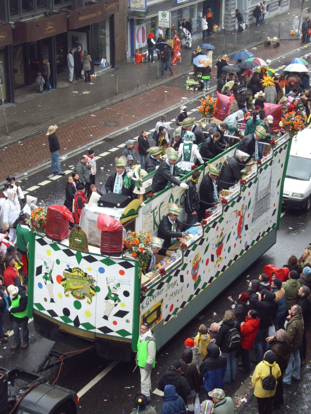 Caritasbereich engagiert, hat bei mir angefragt auf der Suche nach vier Ordnern für den Karnevalswagen seiner „Narrenzunft“. Am Rosenmontag brauchen sie diese Hilfe, damit niemand unter die Räder Ihres Wagens kommt. Wenn die Helfer Lust haben, können sie Rosenmontag schon morgens um 8 mit den Narren am Grünen Weg frühstücken, was vermutlich ziemlich urig wird, ansonsten startet der Zuig wohl so gegen 11 Uhr in der Wilhelmstraße. Der Wagen ist ziemlich weit vorne und wird daher als einer der ersten auch wieder durchs Ziel fahren.Mehr weiß ich nicht, war hier noch nie auf’m Zoch.