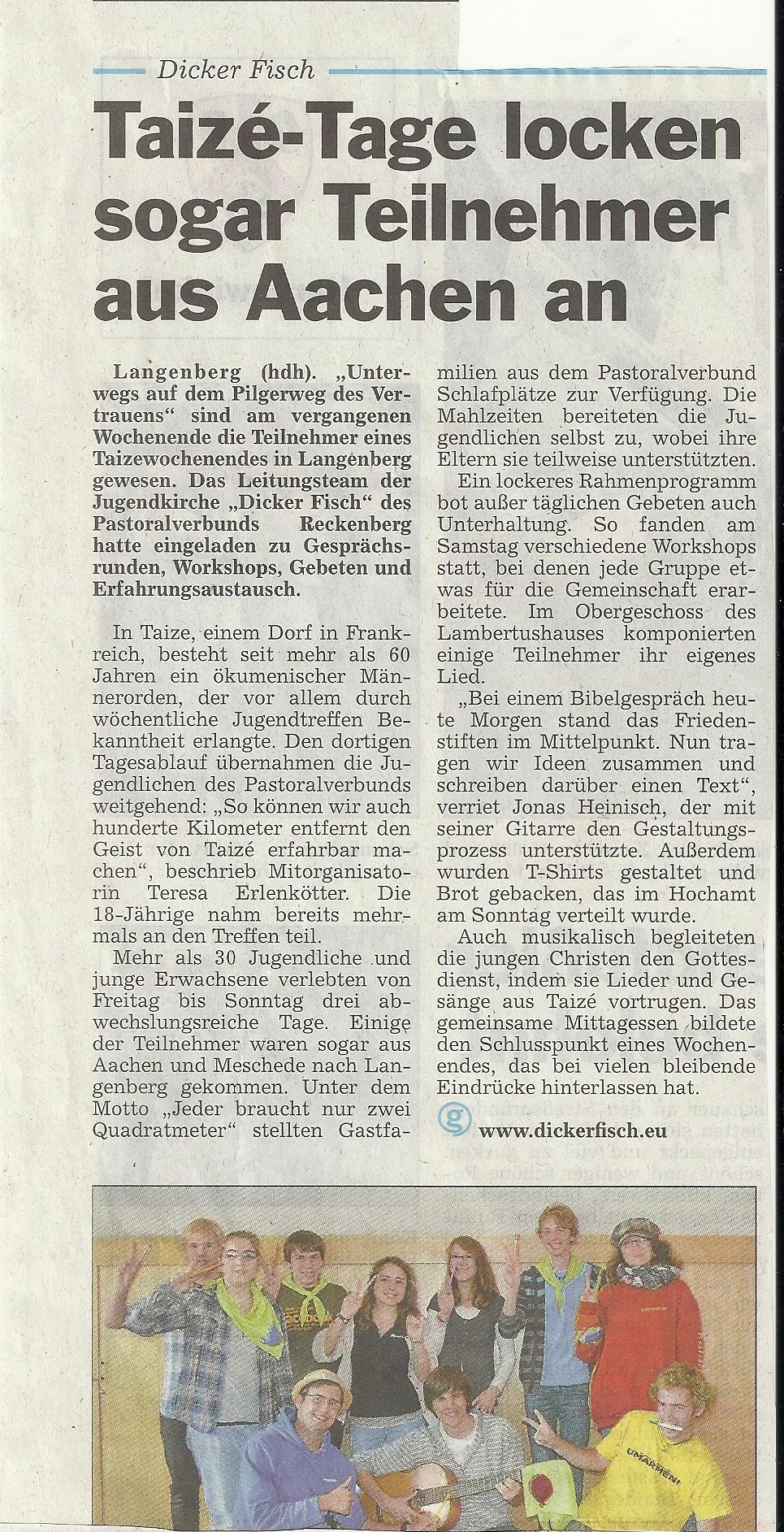 danke an alle für ein unvergessliches taize-wochenende beim dicken fisch in langenberg – es war der wahnsinn. mindestens.