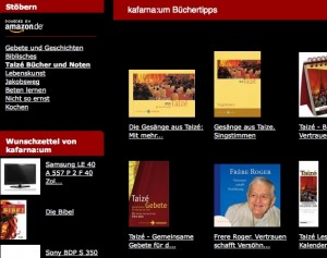 Testweise habe ich einen kleinen Buchladen in unsere Seiten eingebaut, an dessen Einnahmen wir beteiligt werden. Hier gibt es außerdem eine Wunschliste mit Dingen, die geneigte Spender kafarna:um schenken können.