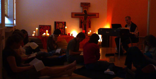 gestern abend ein erster testflug mit kafarnaum, wo noch etwas deko und ein paar sockelleisten fehlen. sonst fehlt eigentlich nichts, es war ziemlich taizé-ig und sehr musikalisch, zwischendurch standen leute draußen am fenster, angezogen von den klängen und dem wunderschönen orangen licht, das durch die lamellen der holzjalousien nach außen dringt. und alles ganz privat heute abend, nur für die erbauer und handverlesene gäste 😉