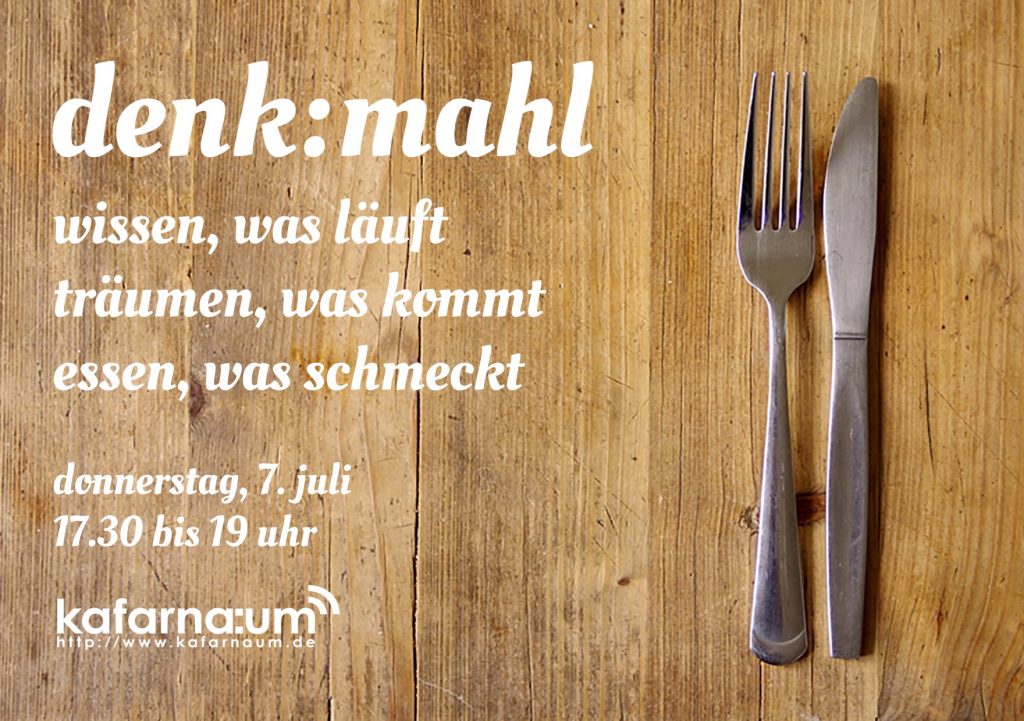 Nächste Woche am Donnerstag ist wieder Platz für deine Ideen und die Gelegenheit, beim Denk:mahl auf dem Laufenden zu bleiben, was in kafarna:um in nächster Zeit so läuft.