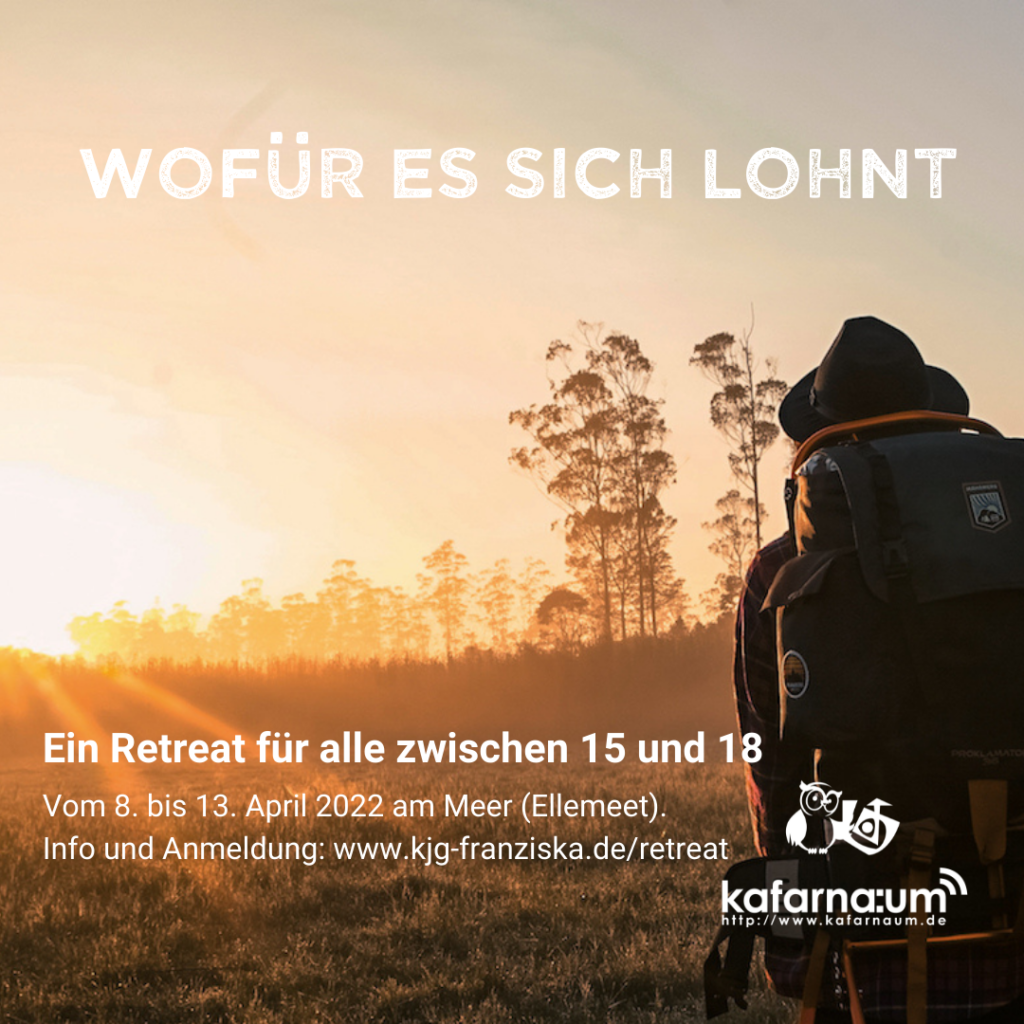 In allen kirchlichen Gemeinden, Gruppen und Verbänden sollen sich Menschen sicher fühlen und ihre persönlichen Grenzen sollen geschützt sein. Damit das geschieht, müssen alle, die sich in der Kinder- und Jugendarbeit engagieren, entsprechend geschult sein. In der Pfarre Franziska von Aachen, zu der auch kafarna:um gehört, kannst du jetzt eine entsprechende Vertiefungsschulung (3-stündig) machen, die […]