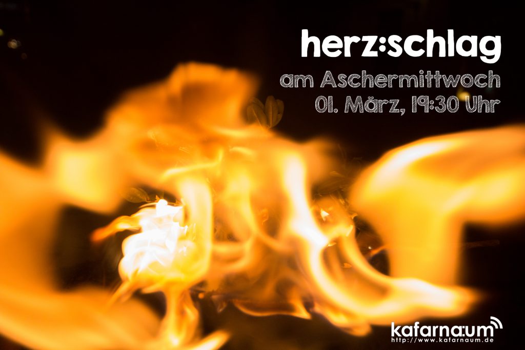 Am Aschermittwoch ist nicht alles vorbei. Die Fastenzeit beginnt. Damit der Aschermittwoch ein guter Start wird, gibt es einen herz:schlag. Inklusive Aschenkreuz. herz:schlag zum Aschermittwoch 01. März, 19:30 Uhr