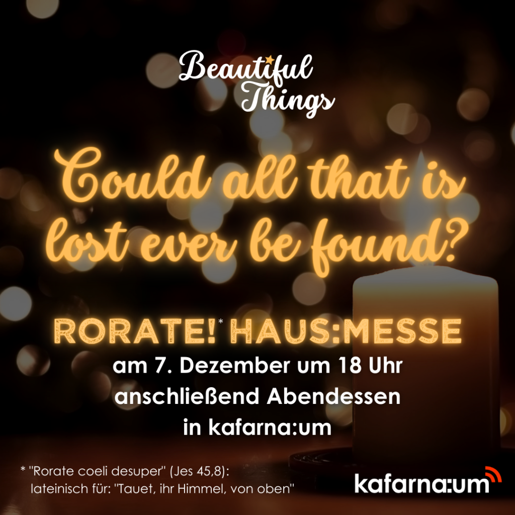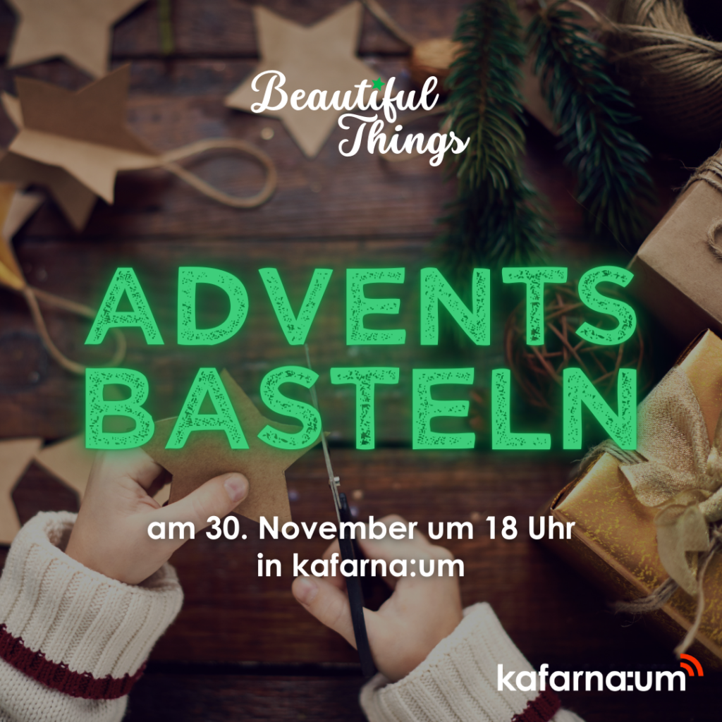 Ob Fröbelsterne, Weihnachtskarten, Papiertannen oder etwas ganz anderes – am Mittwoch, den 30.11., ab 18 Uhr wollen wir zusammen gemütlich in der Küche sitzen und Weihnachtliches für kafarna:um und/oder zuhause basteln. Erste Ideen sowie Grundmaterialien wie Scheren, Klebstoff, Farben, Ton- und Transparentpapier und einiges mehr sind da, falls du etwas Bestimmtes im Kopf hast, kannst