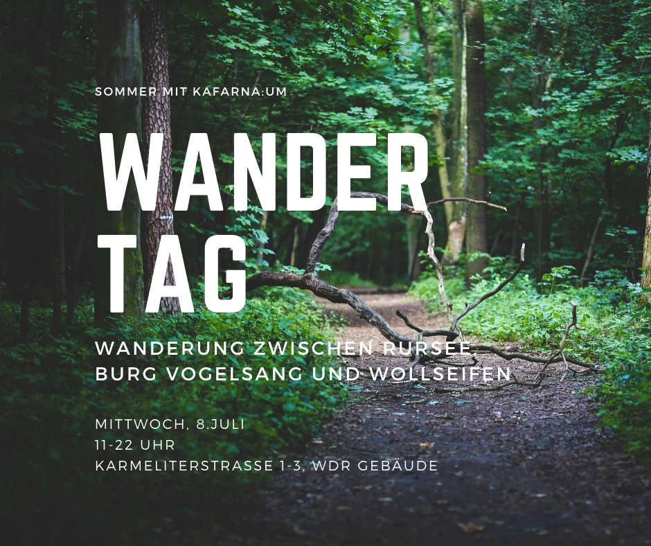 Wir machen einen Ausflug in die Eifel. Dazu starten wir am WDR-Gebäude mit zwei Bullis und fahren an den Rursee. Von dort brechen wir zu Fuß zu einem Rundweg über die Urfttalsperre und Burg Vogelsang auf. Es sind gut 20km, ist also wirklich nur für Wanderwillige gedacht 🙂